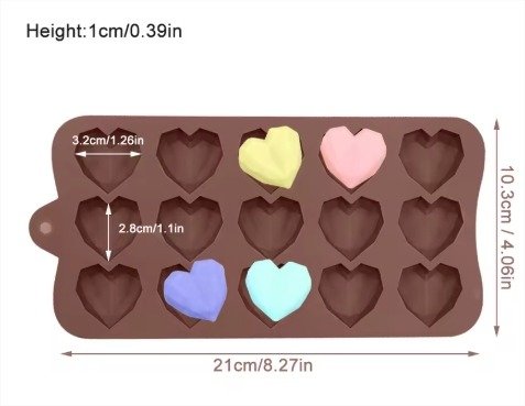 Molde Silicona Bombones Corazones Diamantes x15 Ideal P/ Velas Jabones (029F5)